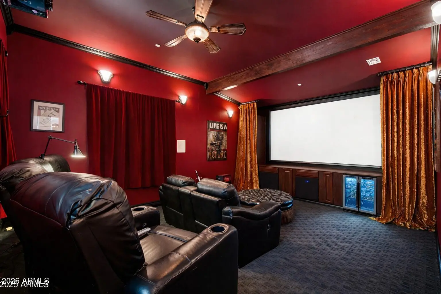 Set quietly at the end of a cul-de-sac, this hillside residence is a striking blend of architecture and landscape, where natural boulders are intentionally integrated into the design to create a home that feels both grounded and elevated. Walls of glass capture sweeping views of Four Peaks, Troon Mountain, and Tom's Thumb, bringing the desert indoors through light, scale, and perspective. Interiors are open and refined, defined by soaring ceilings, arched stone details, carved masonry, and a rich mix of natural materials. A dramatic, hand-finished copper bar anchors the entertaining spaces, contrasting beautifully with stone surfaces and dark wood flooring throughout. Designed for effortless living and hosting, the home flows seamlessly to multiple outdoor living areas