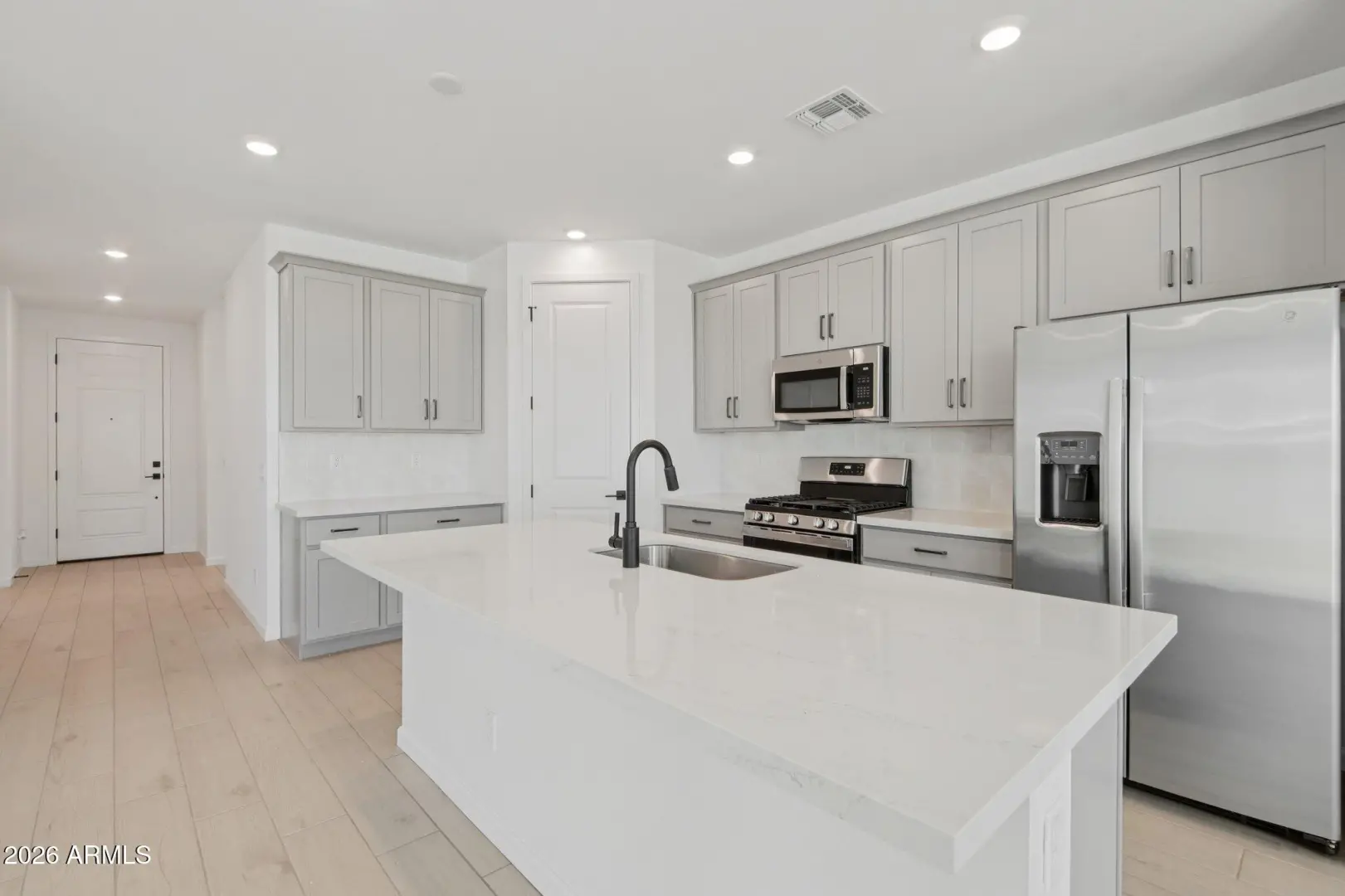 Explore the Marigold floorplan, an open concept 3 bed, 2 bath + den with a 2-car garage and Farmhouse-style exterior. Designed with the Artisan Collection by Ashton Woods Studio, this home features a 12' sliding glass door, blinds, refrigerator, laundry room, and soft water loop. Located in the gated Visara community in Surprise (163rd Ave & Visara Pkwy) with amenities including a pool, basketball court, BBQ/picnic areas, tot lot, community trails, and quick access to Loop 303 & Route 60.