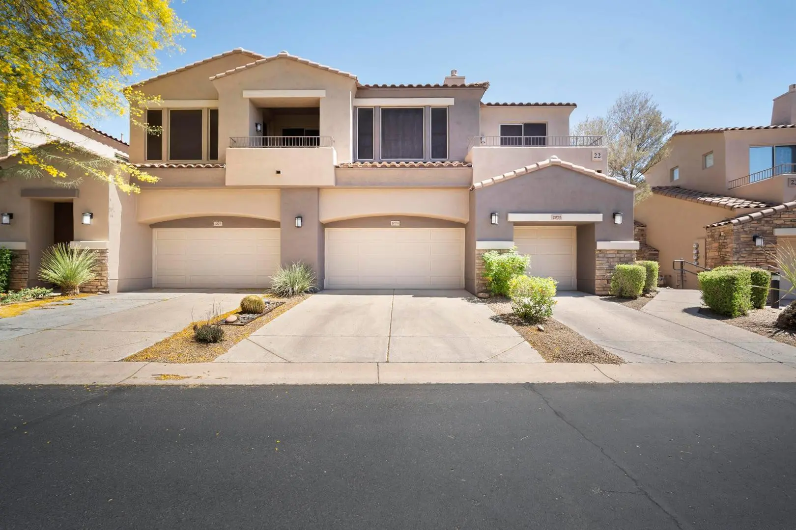 Welcome to your home away from home in the world-renowned Grayhawk golf course community. This tastefully decorated two-story townhome is within the gated community of Tesoro Grayhawk, with 1,666 square feet of luxurious Scottsdale living. It has 2 bedrooms + a den, 2.5 baths, and mountain views. You will enjoy all the comforts of home as it is fully equipped, plus an attached 2 car garage. Enjoy the resort-like amenities including access to a heated swimming pool, spa, and exercise facility.