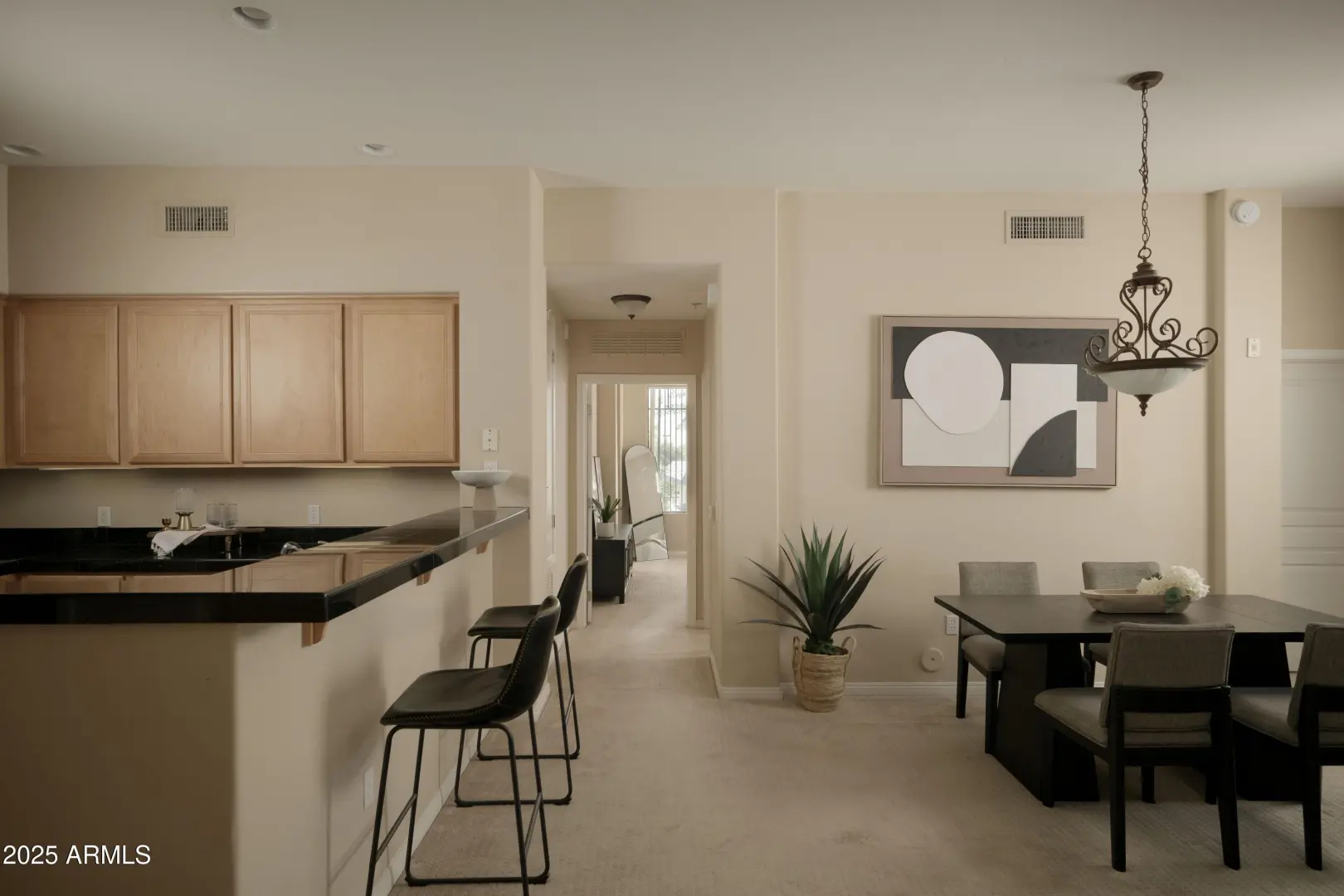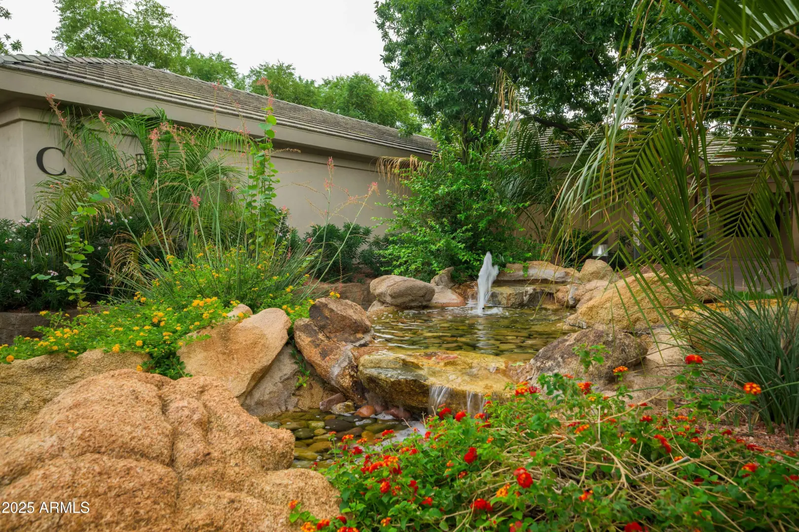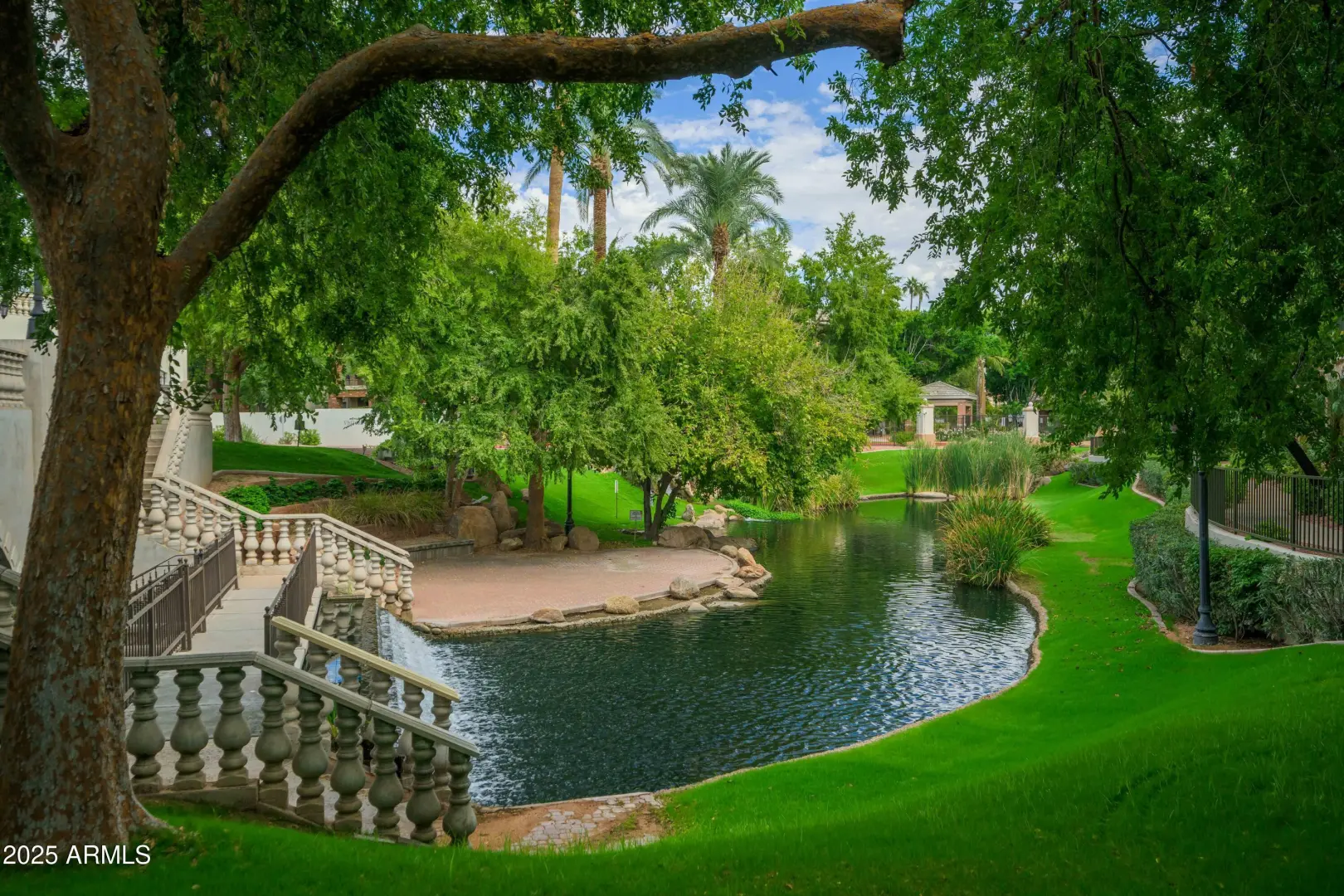 Located in the exclusive gated enclave of Arcadia Grove, this 1,480 SQFT single-level condominium offers two private garages and a desirable great room plan. 9+ ft ceilings, oversized windows, and Arcadia doors fill the home with light, opening to a private patio with city-light views. The gourmet kitchen features fine maple cabinetry, granite counters, and new stainless appliances. Two ensuite bedrooms each provide walk-in closets. Set among lush grounds with waterfalls, pines, and palms, residents enjoy resort-style amenities including a pool, spa, and fitness center.