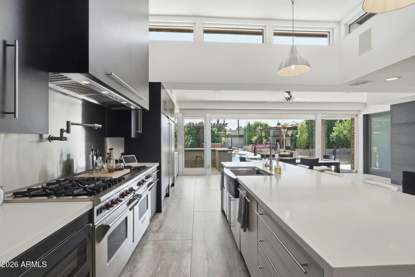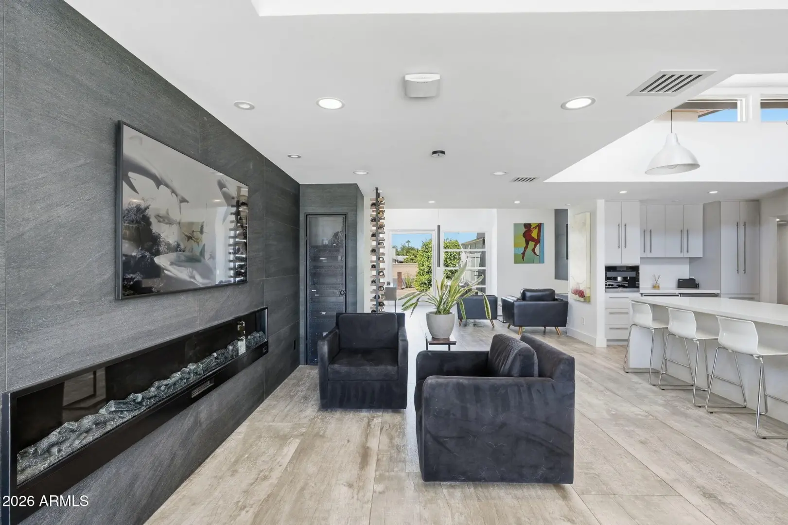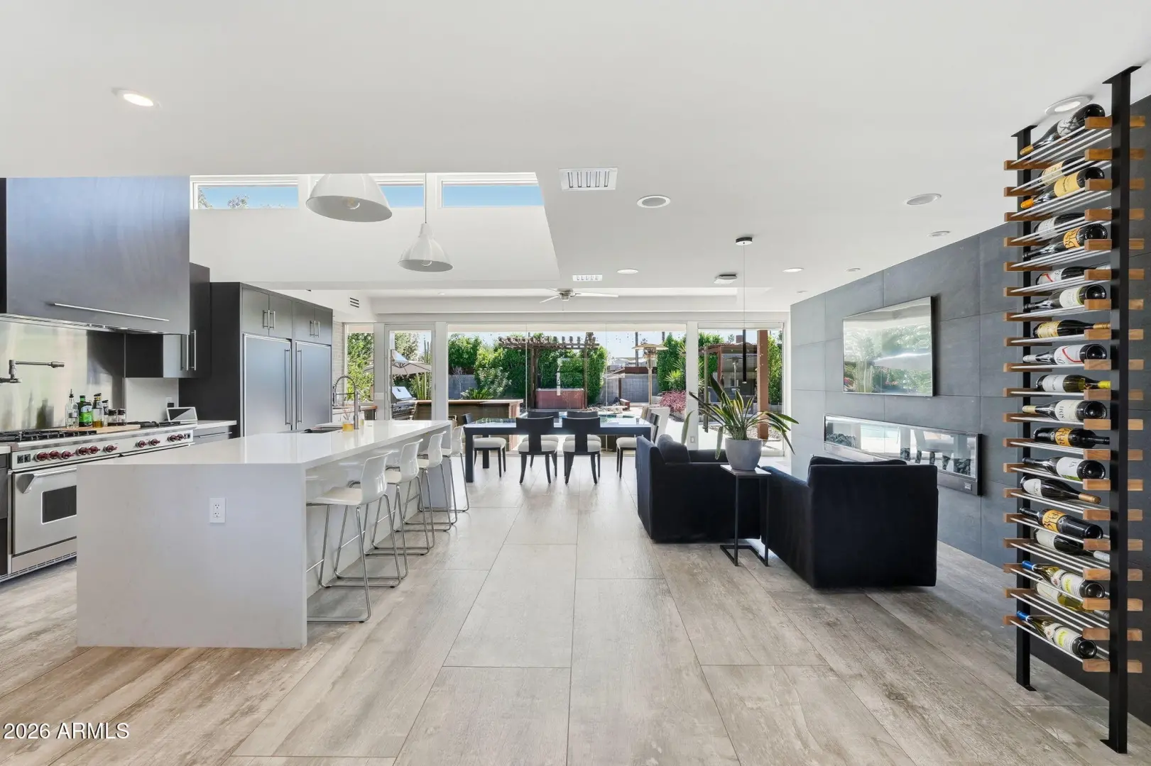 Set in one of Arcadia's most desirable pockets and nestled just west of Arizona Country Club, this modern luxury home delivers elevated design, performance, and resort-style amenities throughout. The open-concept living spaces flow effortlessly to the backyard through expansive glass, creating a true indoor-outdoor lifestyle. The gourmet kitchen is a chef's dream, featuring a 60'' Wolf gas range, Sub-Zero refrigerator/freezer, two Miele dishwashers, a built-in Miele coffee system, a Sharp microwave drawer, under-counter Sub-Zero refrigeration, and U-Line wine refrigerator. Entertain in style with Control4 audio, a private theater room, and warm architectural details including a statement indoor gas fireplace. The outdoor living environment is equally impressive and a true private oas