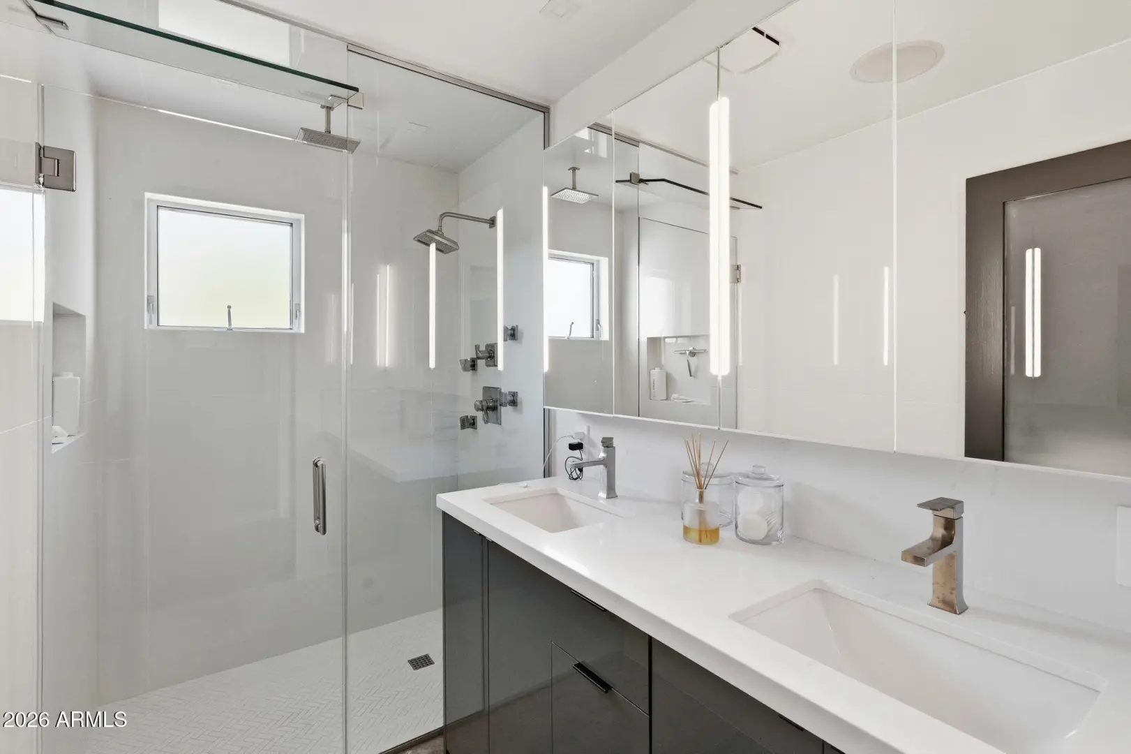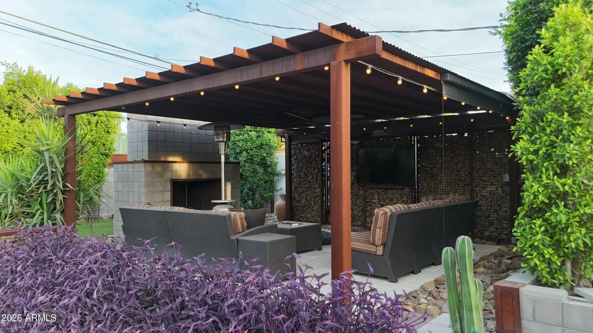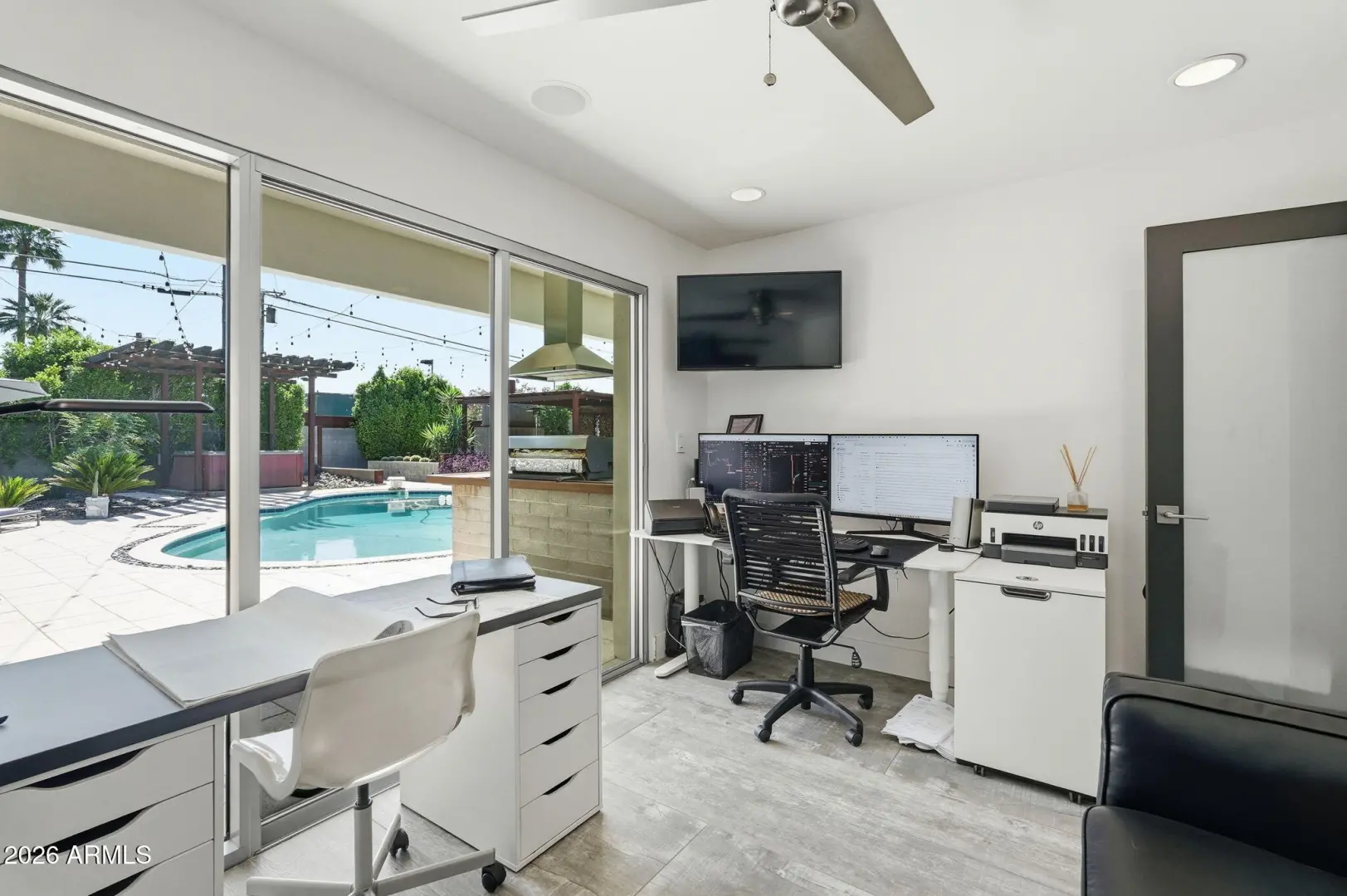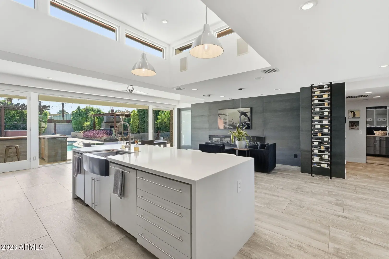 Set in one of Arcadia's most desirable pockets and nestled just west of Arizona Country Club, this modern luxury home delivers elevated design, performance, and resort-style amenities throughout. The open-concept living spaces flow effortlessly to the backyard through expansive glass, creating a true indoor-outdoor lifestyle. The gourmet kitchen is a chef's dream, featuring a 60'' Wolf gas range, Sub-Zero refrigerator/freezer, two Miele dishwashers, a built-in Miele coffee system, a Sharp microwave drawer, under-counter Sub-Zero refrigeration, and U-Line wine refrigerator. Entertain in style with Control4 audio, a private theater room, and warm architectural details including a statement indoor gas fireplace. The outdoor living environment is equally impressive and a true private oas