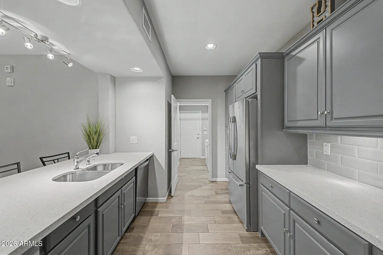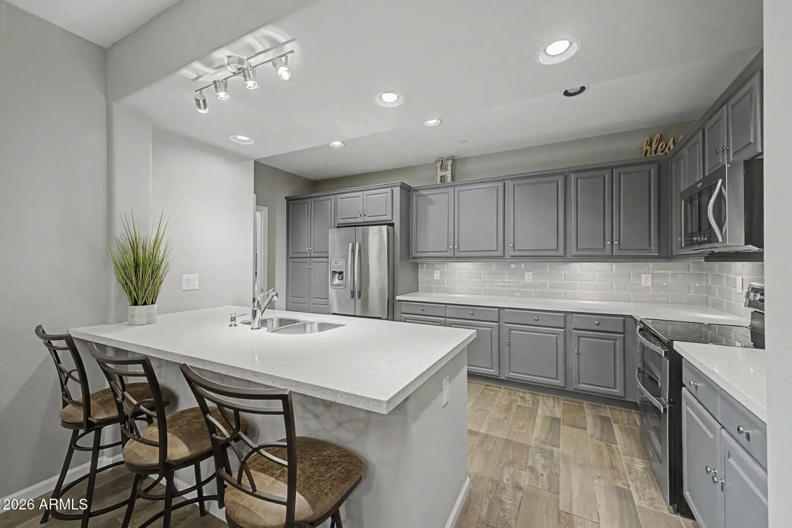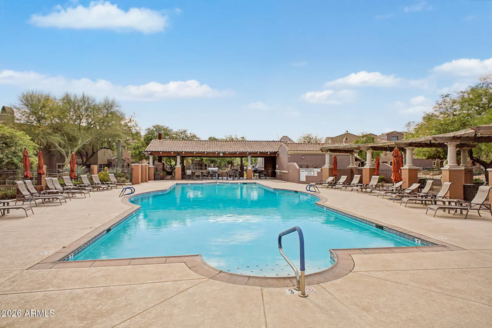 Location, Location, Location! This is a This is a 1386 square foot, 2-bedroom 2 bathroom unit in The Villages at Aviano for Large Master suite with private luxury bath. Endless upgrades totaling $50,000 including Garage floor with Polyaspartic flooring and shelving, Wired alarm system NEW complete Lennox HVAC System, Patio Polyaspartic flooring, Steel front security door, front courtyard gate, Graber shutters on all windows, sunscreens, soft close toilet seats, new shower heads, closet barn doors, In a gated and safe community. Convenient to everything and within walking distance! Includes all the great amenities of Aviano. Luxury living Great Location! Pool within the complex, plus you are a member to the pool and workout facilities at Aviano.