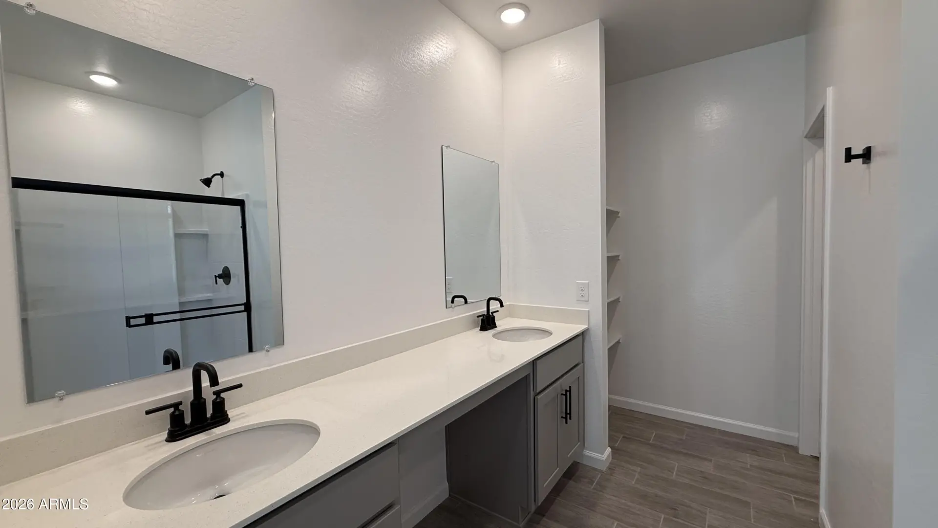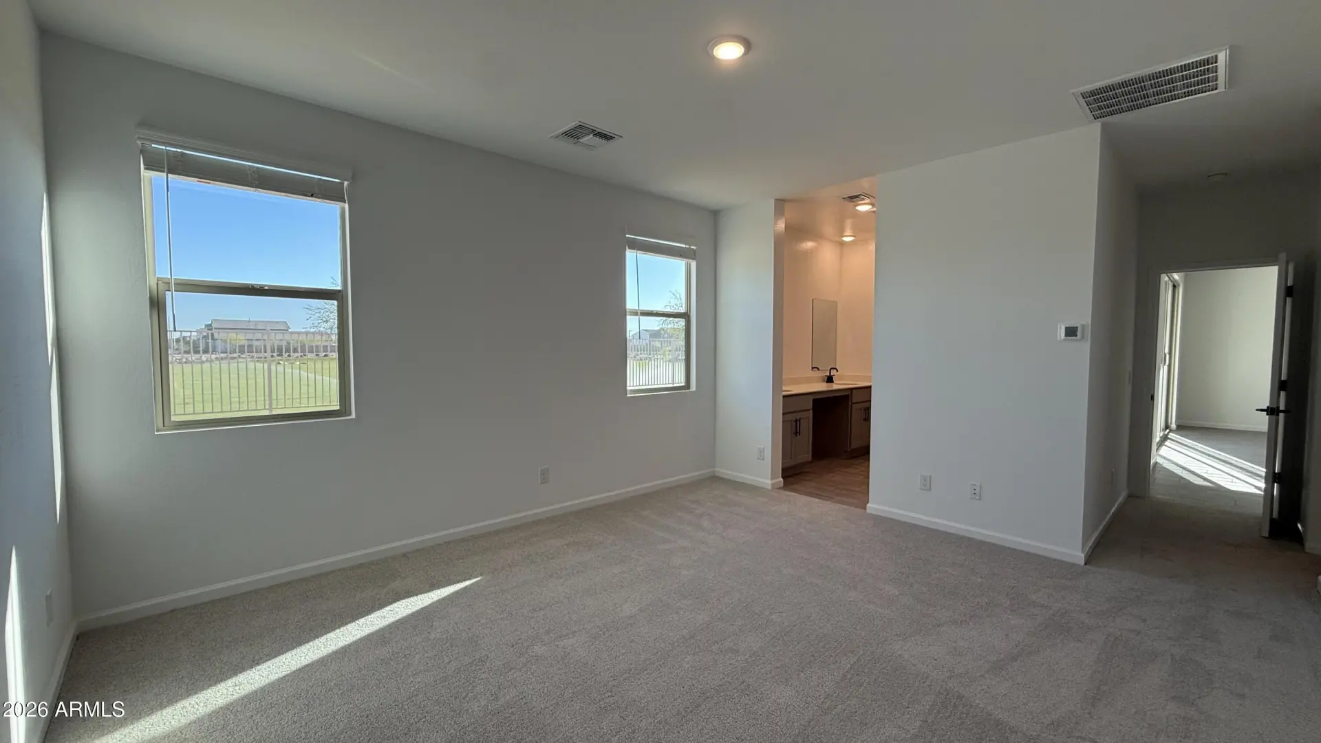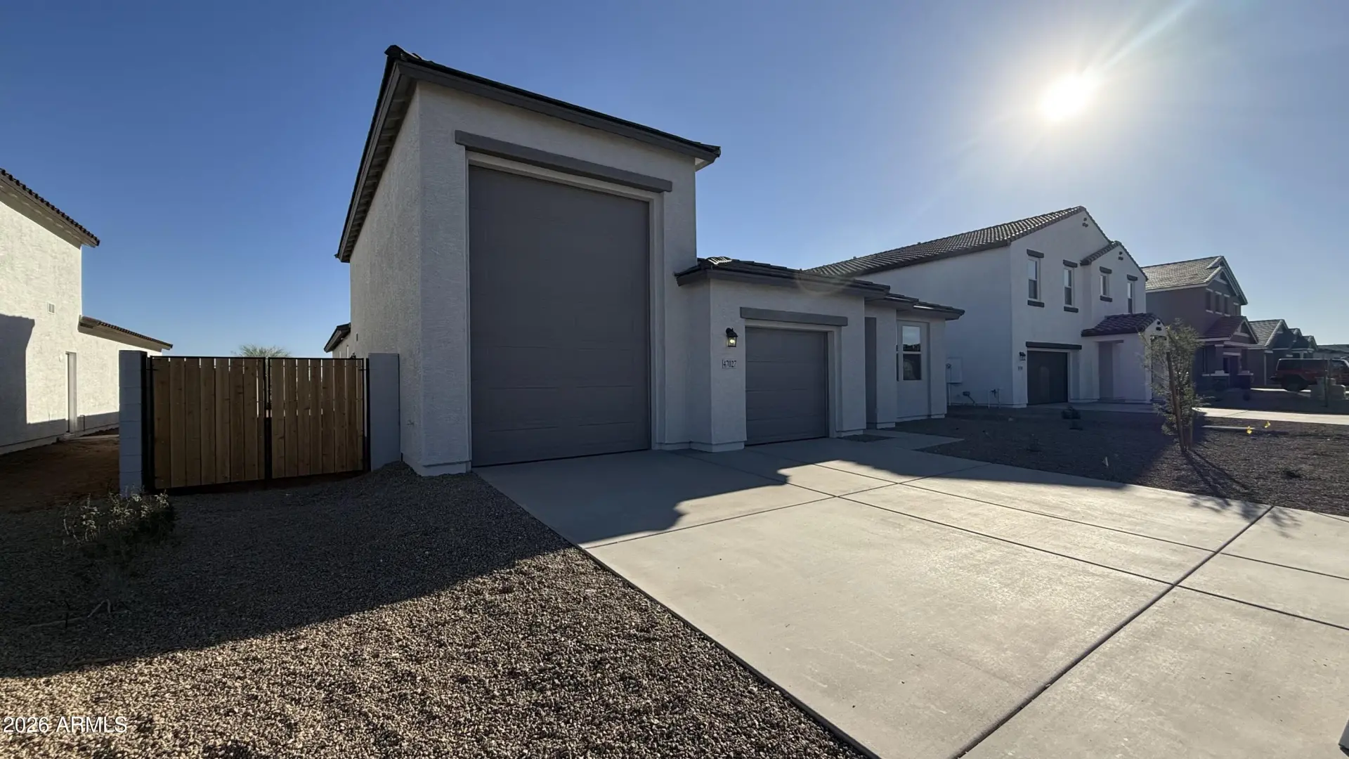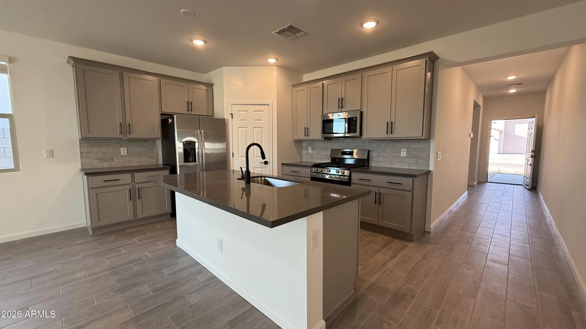 Welcome to your Dream Single-Story RV Garage Home! This Opal RV Garage brand-new construction home plan boasts Arizona's classic Modern Desert architecture in the front, blending seamlessly with its surroundings. With 2,124 square feet of designer-curated living space, this gem offers a place of casual comforts and airy style. This home features our Foundry Collection. The spacious open-concept floor plan has four bedrooms, a large den, and 3 bathrooms. This home has our desYou'll love the magnificent four-panel center siding glass door, bathing the area in sunlight, and the Lakewood Vista 7 x 22 Plank Tile wood-look floors throughout the main living areas, offering elegance and easy maintenance. A chef's delight, the kitchen delivers in every way with Pro Storm Quartz countertops,