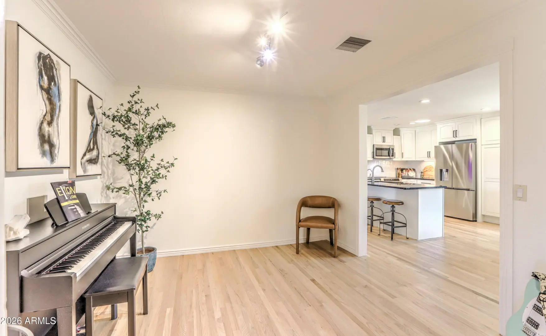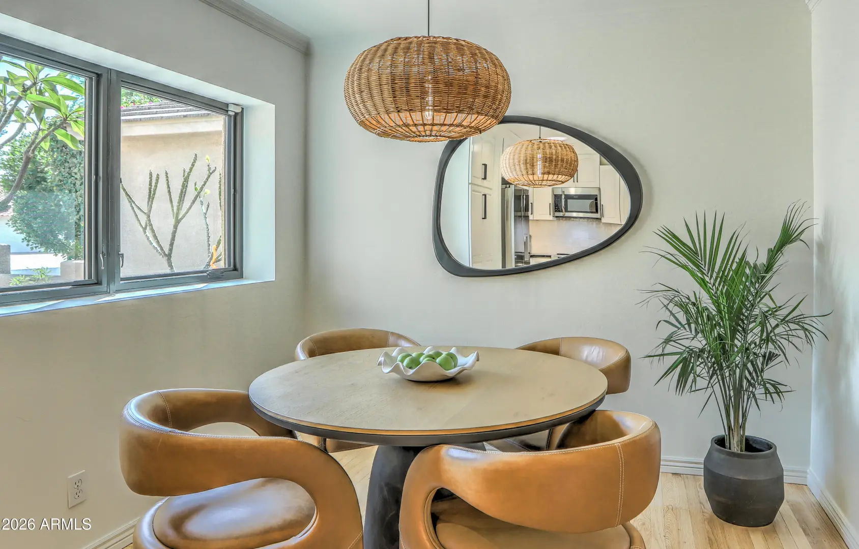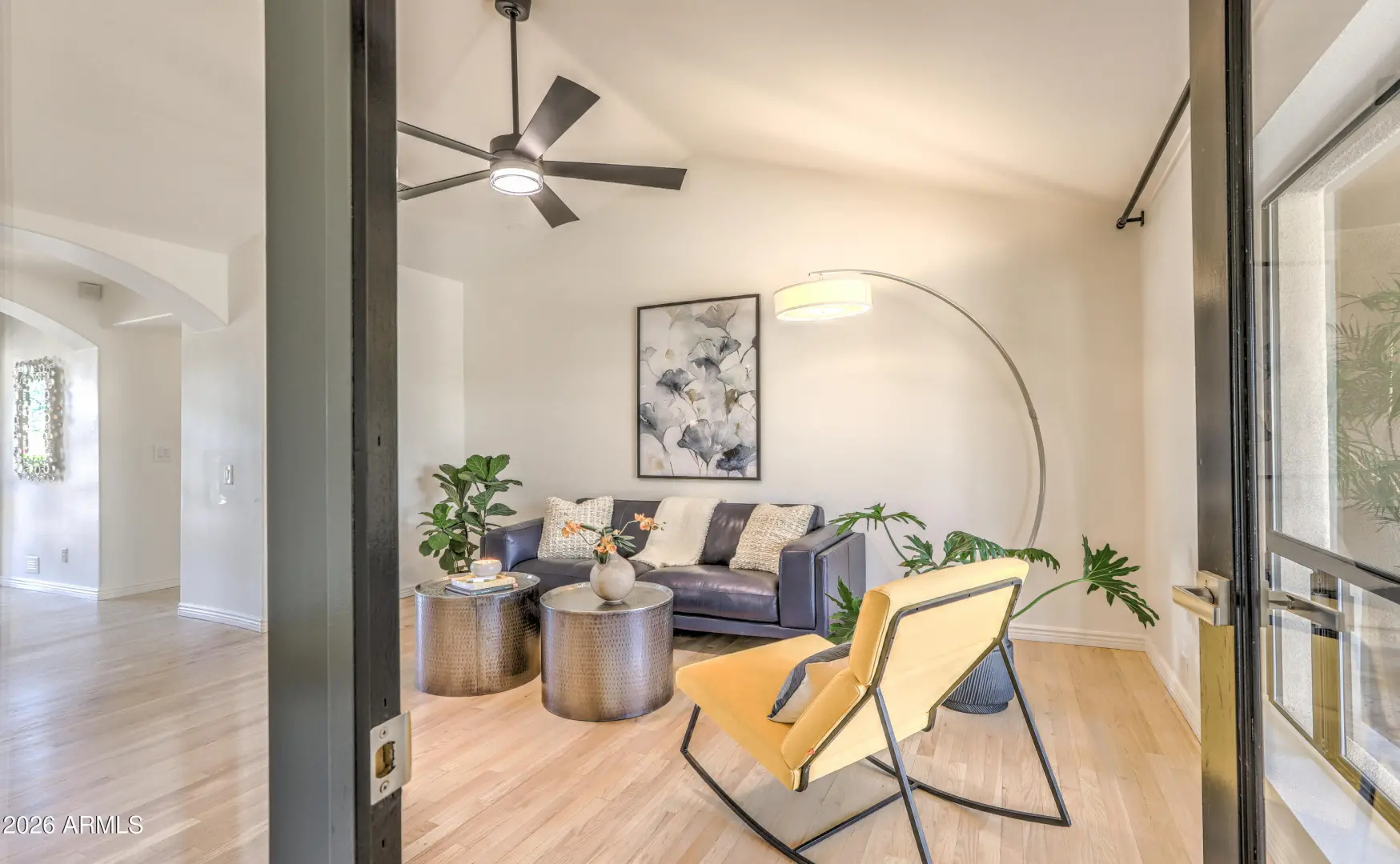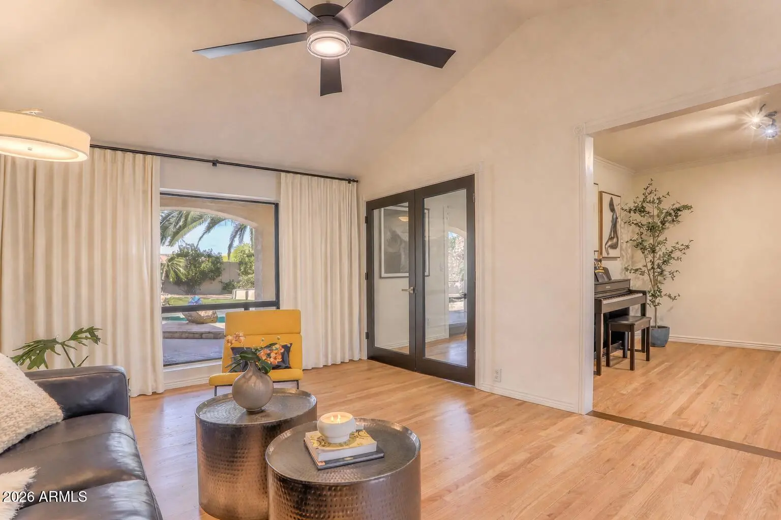 Beautifully updated North Scottsdale home on a quiet, low-traffic street in a highly desirable neighborhood. This light-filled residence features newly refinished oak hardwood floors, fresh designer finishes, and a flowing layout ideal for both everyday living and entertaining. The renovated bathrooms offer a spa-like retreat with elegant tile, modern fixtures, and a clean, timeless aesthetic. Step outside to a private yard with mature palm trees, towering Eucalyptus and fruit trees including lemon, lime, pomegranate, grapefruit and fig-perfect for enjoying fresh citrus and garden harvests throughout the year. The peaceful block and well-maintained surroundings create a true neighborhood feel while still being minutes from top schools, shopping, dining, Community Centers and