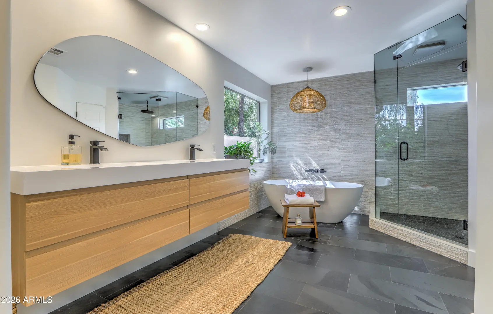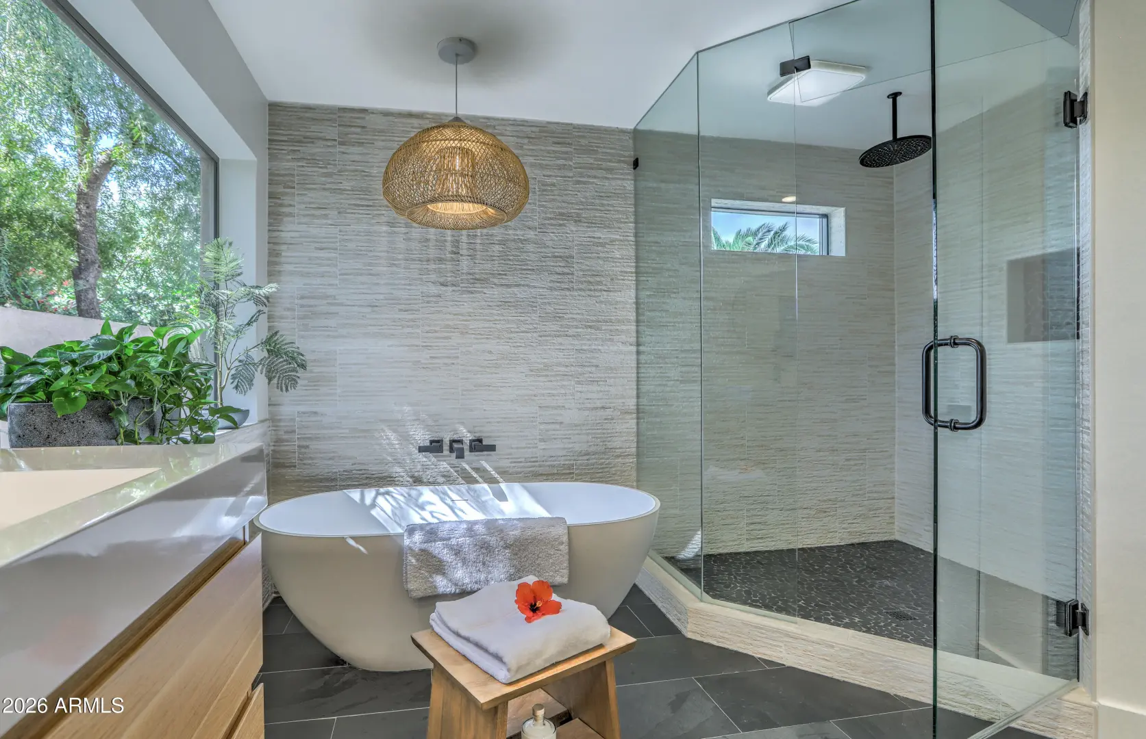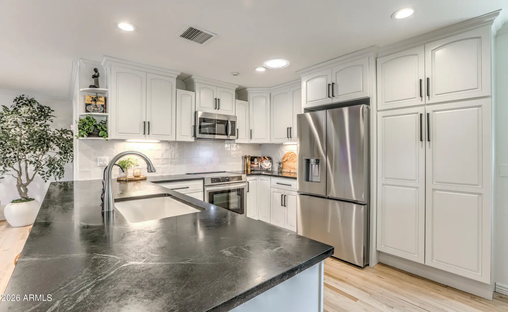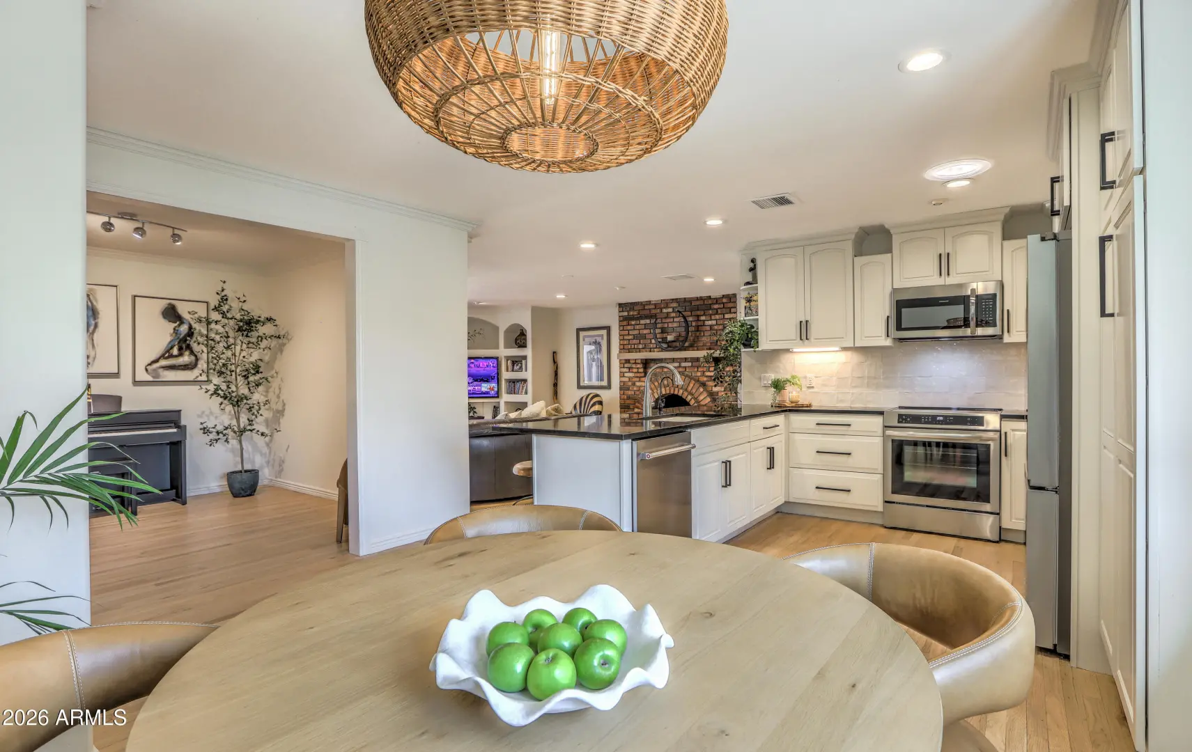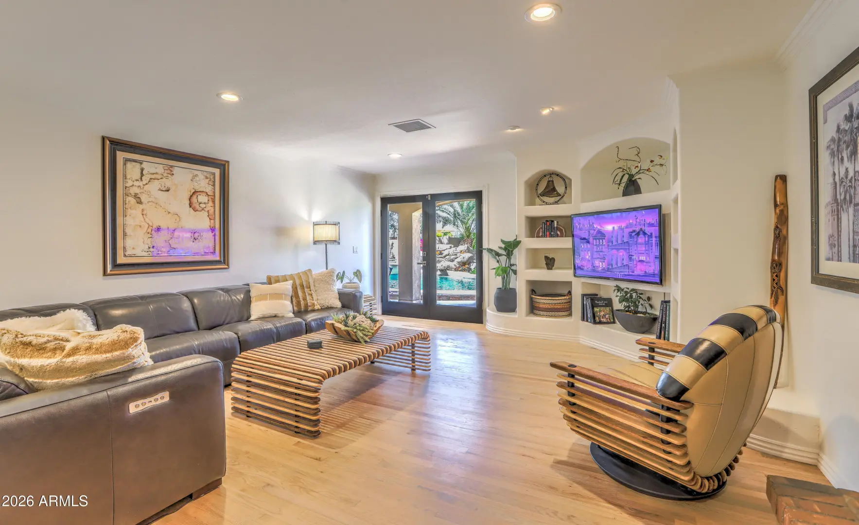 Beautifully updated North Scottsdale home on a quiet, low-traffic street in a highly desirable neighborhood. This light-filled residence features newly refinished oak hardwood floors, fresh designer finishes, and a flowing layout ideal for both everyday living and entertaining. The renovated bathrooms offer a spa-like retreat with elegant tile, modern fixtures, and a clean, timeless aesthetic. Step outside to a private yard with mature palm trees, towering Eucalyptus and fruit trees including lemon, lime, pomegranate, grapefruit and fig-perfect for enjoying fresh citrus and garden harvests throughout the year. The peaceful block and well-maintained surroundings create a true neighborhood feel while still being minutes from top schools, shopping, dining, Community Centers and